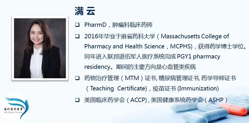 非常感谢大家收听本期课程!接下来将由尹凌药师和夏铮铮药师讲解关于美国肿瘤临床药师的临床角色和详细的优化审核化疗药物的流程,有兴趣的朋友请持续关注。