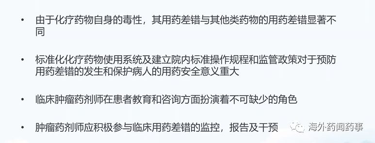化疗药物的用药安全是抗肿瘤治疗中一个极具挑战的问题,那么如何最大化地保证患者的用药安全是我们临床药剂师的一个重要的职责所在。今天我将讲解美国肿瘤专科用药的安全管理理念和实践以及肿瘤科药剂师在抗肿瘤药物使用所扮演的角色。