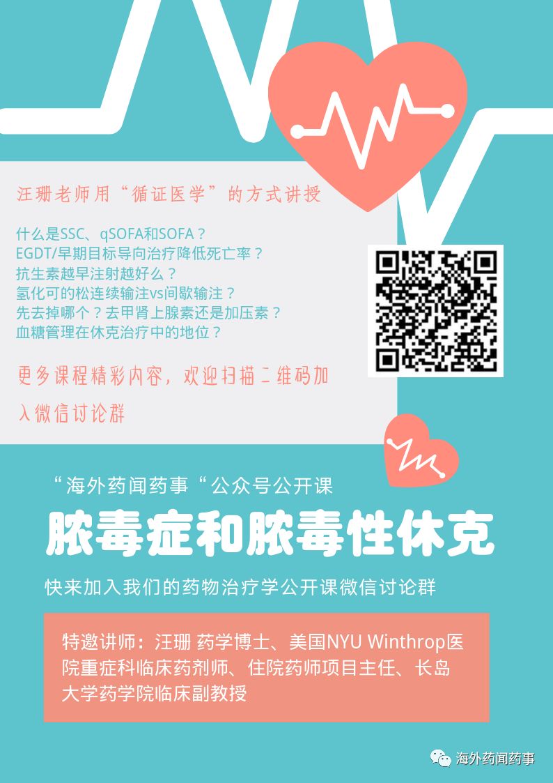 大家好,这是“海外药闻药事”公众号由资深中美临床药师联袂推出的药物治疗学精品公开课系列之重症医学专题。