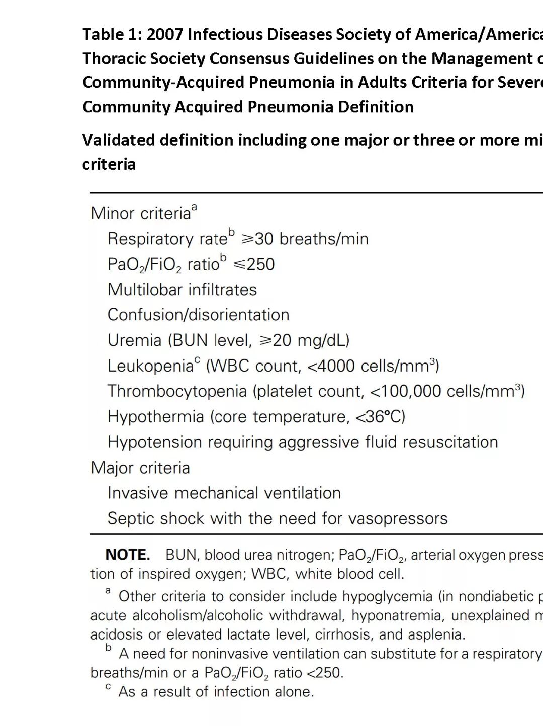 2. 如果没有上述情况,那就采用表1的次要严重标准(minor severity criteria)和临床经验,来决定是否需要更高强度的ICU治疗。
